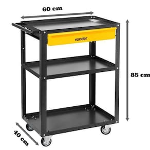 DETALHES TÉCNICOS: Altura do carrinho para ferramentas:85,0 cm Largura do carrinho para ferramentas:40,0 cm Comprimento do carrinho para ferramentas:60,0 cm Material do carrinho para ferramentas:Aço carbono Cor do carrinho para ferramentas: Preto e amarelo