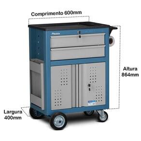 Características TécnicasEste carrinho é voltado para profissionais que buscam uma solução completa para armazenamento e transporte de ferramentas. Seu design fechado contribui para manter os itens protegidos contra poeira e outros agentes externos, o que prolonga a vida útil de equipamentos delicados. Além disso, a presença de compartimentos laterais e internos amplia as opções de armazenamento, permitindo que desde pequenas peças até ferramentas maiores sejam organizadas de forma funcional.
