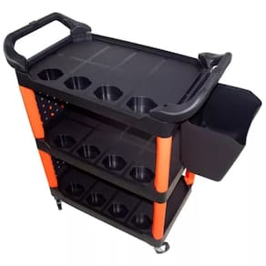 Carrinho Para Ferramentas Hard Work Kers Cada um dos 3 níveis suporta até 43kg de peso, permitindo um total de 130kg de capacidade de carga. O Carrinho KERS Hard Work é um organizador essencial para Detalhamento e Estética Automotiva. Com ele, é possível otimizar processos, economizando tempo e adicionando um toque profissional ao seu espaço de trabalho. Fabricado com materiais de alta resistência e qualidade, dispõe de 3 níveis para organizar todos os itens necessários durante o processo de detalhamento. Possui encaixes para pulverizadores e embalagens de produtos, proporcionando fácil acesso e melhor aproveitamento do tempo. Inclui um suporte lateral para ferramentas, pulverizadores e outros acessórios. Conta também com uma caixa lateral para armazenar escovas e outros acessórios, permitindo acesso ágil e conveniente. Equipado com rodas que facilitam a movimentação no local de trabalho. A NR Estética oferece uma de 7 dias em seus produtos