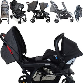 Carrinho de Bebe Gemeos Galzerano Doppio II com Bebe Conforto Grid e Base
