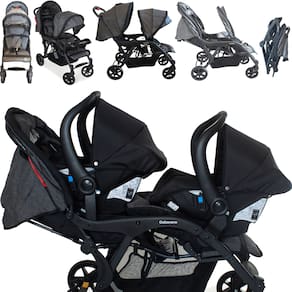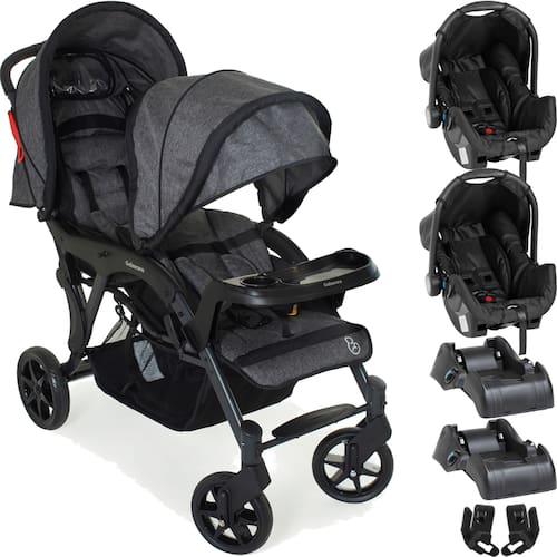 Carrinho de Bebe Gemeos Galzerano Doppio II com 2 Bebes Conforto Grid e 2 Bases