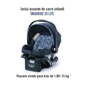Principais características bebê conforto: - para crianças desde o nascimento até 16kgs - cinto de segurança 3 pontos com ajuste de largura, altura e protetores acolchoados - capa removível e lavável na máquina. - alça com várias posições: fixa, transporte, balanço e para instalar no carro - capota retrátil - peso suportado bebê conforto: até 13kgs - modelo: snugride 35 lite - com base veícular Especificações técnicas: - conteúdo da embalagem: 1 carrinho de passeio + bebê conforto + manual de instruções. - peso do produto:13,5kgs - composição/material: plástico, poliéster, metal - garantia: 12 meses contra defeito de fabricação pelo fabricante - referência do fabricante:2139060 - ean:0047406175321 - marca:graco