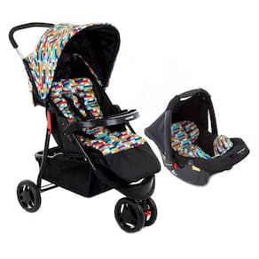 - Material: Carrinho: Estrutura em Ferro e polipropileno, Revestimento: Poliéster; Bebê conforto: Capa: 100% Poliéster; Estrutura: Plástico Resistente
