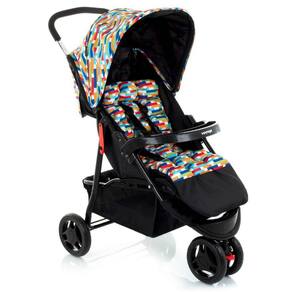 Para os pais, tem manopla com revestimento macio, capota retrátil com visor, amplo cesto porta-objetos com capacidade para 5 kg e bolso na capota. Trava de giro na roda dianteira e freio interligado, de fácil acionamento, nas traseiras.