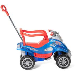 Cada detalhe da linha Carrinho Cross Legacy Azul foi projetado para oferecer uso intuitivo e diversão prolongada: rodas com borracha antiderrapante evitam derrapagens, o assento abre para guardar brinquedos e o suporte para bolsa torna os passeios mais práticos