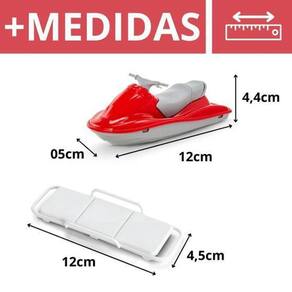 Tamanho do jet ski: 12cm de comprimento, 05cm de largura e 4,5cm de altura.