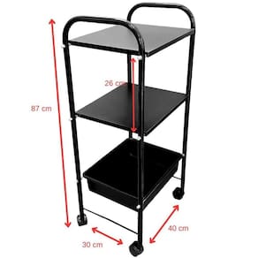 Carrinho porta esmalte auxiliar manicure 2 bandejas em plástico polipropileno PP super resistente, estrutura em ferro com pintura eletrostática, mais resistente á riscos. Produzido com materiais de alta qualidade, proporcionando maior durabilidade Possui 4 rodinhas. Altura: 46 cm x Profundidade 30 cm x Largura 40 cm