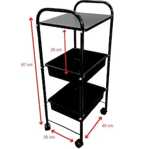 Carrinho porta esmalte auxiliar manicure 2 bandejas em plástico polipropileno PP super resistente, estrutura em ferro com pintura eletrostática, mais resistente á riscos. Produzido com materiais de alta qualidade, proporcionando maior durabilidade Possui 4 rodinhas. Altura: 46 cm x Profundidade 30 cm x Largura 40 cm
