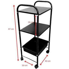 Carrinho porta esmalte auxiliar manicure 2 bandejas em plástico polipropileno PP super resistente, estrutura em ferro com pintura eletrostática, mais resistente á riscos. Produzido com materiais de alta qualidade, proporcionando maior durabilidade Possui 4 rodinhas. Altura: 46 cm x Profundidade 30 cm x Largura 40 cm Marca: Não Informado