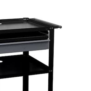 Possui uma gaveta e suporte teclado na parte superior.