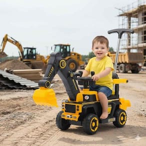 Carrinho Retroescavadeira Elétrica 6v Com Pá Móvel E Alça De Empurrar Brinquedo perfeito para despertar a imaginação, criatividade e coordenação motora das crianças, proporcionando momentos de pura diversão e aprendizado. Com um design moderno e realista inspirado em verdadeiras máquinas de construção, ele estimula o faz de conta e ajuda os pequenos a desenvolverem habilidades motoras enquanto exploram o mundo ao seu redor. Conta com uma pá dianteira totalmente móvel e ajustável, permitindo que a criança simule escavações e transporte de areia, pedrinhas ou brinquedos, tornando a brincadeira ainda mais interativa e envolvente. O volante funcional com buzina adiciona um toque extra de realismo e diversão, enquanto a alça de empurrar removível permite que os pais conduzam o brinquedo com segurança e conforto, ideal para passeios ao ar livre. As rodas largas e resistentes garantem estabilidade e firmeza em diferentes tipos de terreno, e o assento ergonômico com compartimento interno oferece praticidade para guardar pequenos objetos ou brinquedos. Fabricado com plástico de alta qualidade, resistente e seguro, o trator é projetado para suportar o uso diário, garantindo durabilidade e segurança durante as brincadeiras. Indicado para crianças a partir de 2 anos, e pode ser utilizado tanto em ambientes internos quanto externos. Seja no quintal, na sala ou no parquinho, é o presente ideal para meninos e meninas que adoram aventuras, máquinas e brincadeiras ao ar livre. Transforme o momento de brincar em uma experiência cheia de descobertas, alegria e imaginação. Possui luzes, música, volante dirigível e apoio para os pés. Indicado para crianças acima de 3 anos