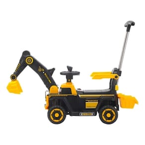 Contém: 01 Retroescavadeira Elétrica 6V com Pá Móvel e Alça de Empurrar - Amarela