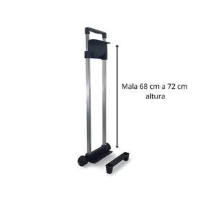 Carrinho rodinha troca mala viagem grande 70 cm Cor: Preto Suporte com rodinhas para em mala de viagem 70 cm de altura Suporte com Haste de alumínio e rodinhas duplas em cada lado - Indicada para em mala de viagem - Instalação deverá ser feita por um profissional sapateiro , necessita ser arrebitado - Modelo a ser escolhido é conforme a altura da mala nas costas podendo variar até 1 cm. Modelo 70 cm: - medidas totais: 75 cm altura haste encolhida x 31 cm largura rodinha a rodinha , encaixe da mala 70 cm, haste esticada 100 cm - peso do produto 836 gramas - Acompanha pé frontal - Parafusos/ arrebites não incluso Marca: Paulitec