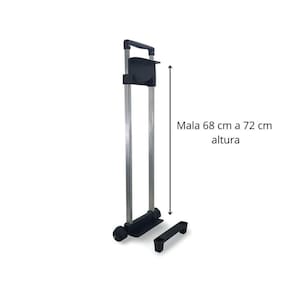 Carrinho rodinha troca mala viagem grande 70 cm Cor: Preto Suporte com rodinhas para em mala de viagem 70 cm de altura Suporte com Haste de alumínio e rodinhas duplas em cada lado - Indicada para em mala de viagem - Instalação deverá ser feita por um profissional sapateiro , necessita ser arrebitado - Modelo a ser escolhido é conforme a altura da mala nas costas podendo variar até 1 cm. Modelo 70 cm: - medidas totais: 75 cm altura haste encolhida x 31 cm largura rodinha a rodinha , encaixe da mala 70 cm, haste esticada 100 cm - peso do produto 836 gramas - Acompanha pé frontal - Parafusos/ arrebites não incluso Marca: Paulitec