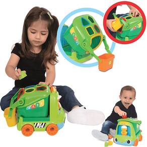 Brinquedo para Bebe Truckids Coleta Legal C/ATIVIDIndicado a partir dos 12 meses! Ensine às crianças a importância da reciclagem de forma divertida e educativa! Com cantos arredondados e cores vibrantes, este caminhão e a escolha perfeita para crianças que ama aprender brincando; Caçamba basculante: desenvolva a coordenação motora fina da criança com a caçamba que levanta e abaixa, simulando o descarte correto do lixo; Container de lixo articulado: torne a brincadeira mais realista com o container de lixo articulado que se move para cima e para baixo; Rolinho colorido giratório: estimule a coordenação motora fina da criança com o rolinho colorido que gira e gira, trazendo mais alegria para a brincadeira; Tampa com formas geométricas para encaixe: incentiva o aprendizado das formas geIndicado a partir dos 12 meses!Tamanho: L29 X A22 X C20