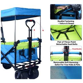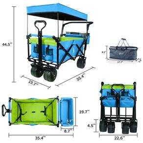 Quando dobrado, o carrinho tem um tamanho de aproximadamente 76 x 61 x 20 cm e um peso de aproximadamente 15,74 quilos. A alça telescópica é ajustável e pode ser estendida até 101 cm, proporcionando uma alça ajustável de 180 graus, permitindo que você empurre ou puxe o carrinho com facilidade. O carrinho também possui um cesto traseiro de 50 x 16 x 22 cm, uma bolsa térmica portátil à prova de vazamentos que mantém o frio por até 34 horas, muitos bolsos internos de armazenamento, um par de tiras de segurança de três pontos e um dossel removível que oferece proteção solar e à prova de chuva.