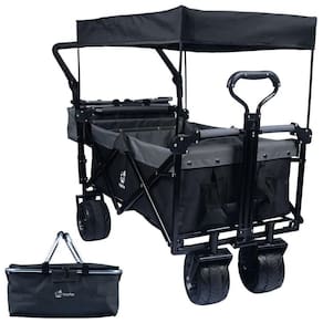 As rodas grandes giratórias de 360 graus, com tamanho de 17 cm de diâmetro x 12 cm de largura, podem ser amplamente utilizadas em diferentes tipos de terrenos, como areia de praia, rampas, pedras, gramados e degraus. O carrinho possui um par de freios de pé nas rodas traseiras e pode ser facilmente aberto para uma grande capacidade de armazenamento interno de aproximadamente 100 litros, sem necessidade de montagem, configurado em 3 segundos para dobrar ou abrir.