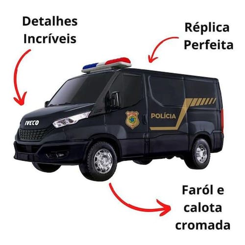 O Carrinho Infantil de Policia da Iveco e uma bela Van que possui abertura das portas traseiras, rodas livres e giroflex, agora tambem acompanhado de acessorios. E um novo Iveco Daily unico em estilo e detalhes para soltar a imaginacao em brincadeiras diversas. E a diversao da criancada!