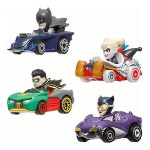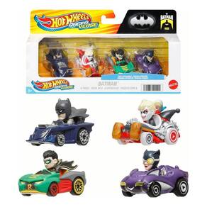 Pack com 4 Carrinhos Batman – ,Batman,harley quinn, robin, Catwoman - HKD30 Leve a diversão de Batman DC para casa com este incrível Pack com 4 Carrinhos Colecionáveis! Inspirados nos personagens mais queridos da saga – Batman – cada carrinho traz detalhes únicos que remetem ao visual e à personalidade de cada Personagem