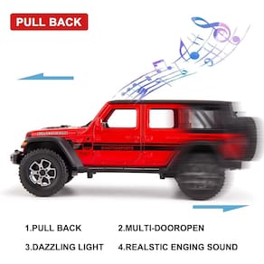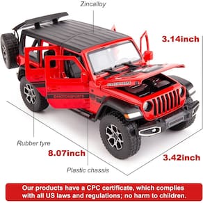 - Este carro com tração traseira modelo Wrangler 1/22 é muito adequado para crianças brincarem. A tinta é requintada, agradável e pesada de segurar. Também é muito adequado para entusiastas de modelos de automóveis como decoração.