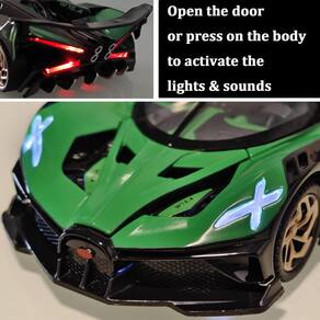 - Modelos de carros de brinquedo de alta qualidade: o modelo de carro é perfeito para meninos obcecados pela Bugatti Toy. Carro de brinquedo que abre portas e compartimento do motor, o modelo de carro tem partes móveis, luzes e capô abertos para ver o motor.
