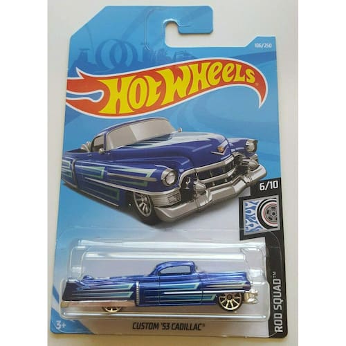 Hot Wheels 2019 Mainline Rod Squad: Cadillac 53 personalizado (azul) - International Long Card