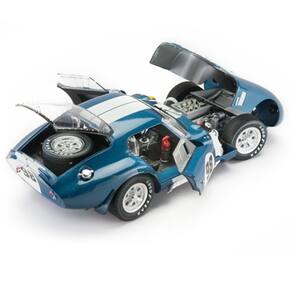 Faça sua própria história com este incrível carro esportivo dos anos 60. Este Shelby Cobra Daytona Coupe #98 de 1965 é uma réplica de modelo fundido sob pressão em escala 1/18. Ele vem na cor azul e possui portas, capô e porta-malas que podem ser abertos, motor, interior e chassi autenticamente detalhados, acessórios cromados detalhados e pneus de pvc. É um excelente automóvel para qualquer coleção de carros esportivos e um achado incrível para fãs devotos de Shelby! -- SC130 Shelby - 1965 Shelby Cobra Daytona Coupe Hard Top #98 -- Modelo colecionável fundido sob pressão em escala 1:18 -- Montado em uma plataforma de exibição -- Este Shelby Cobra Daytona é um Shelby Cobra Daytona é um carro modelo colecionável moldado sob pressão em escala 1:18 -- Portas, capô e porta-malas que podem ser abertos, motor, interior e chassi autenticamente detalhados, acessórios cromados detalhados e pneus de PVC -- Embalados individualmente em um caixa de janela.