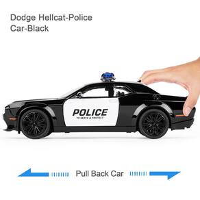 carro de polícia - Carro de polícia: carros de polícia dodge challenger demon para crianças de 3 a 5 anos, disponível para preto - Detalhes: carro de brinquedo da polícia hellcat com exterior e interior realistas, luzes e sons, portas que podem ser abertas, capô, porta-malas, volante giratório, botão liga/desliga e função de puxar para trás. Carros de brinquedo esportivos requintados para meninos de 4 a 7 anos - Material: feito de metal e material plástico ABS, modelos de carros de metal resistente para crianças de 3 a 12 anos, não é fácil de quebrar - Tamanho: CxLxA (cm): 20 cm x 10 cm x 6 cm. Carros fundidos em escala 1/22 para crianças e adultos - Múltiplos usos: carro modelo de brinquedo multifuncional, adequado para brinquedos infantis ou cllection de carro para amantes de carros, aniversário/Natal/feriado/presentes de Dia das Crianças para meninos de 3, 4, 5, 6, 7, 8 anos de idade