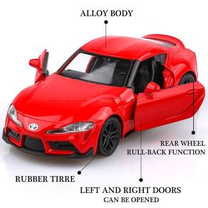 TOKAXI Os modelos de carros TOYOTA fundidos são feitos de materiais de liga de alta qualidade e são réplicas em miniatura de carros reais. Estes brinquedos de carro são pequenos o suficiente para as mãos das crianças manusearem, feitos fofos e fáceis de controlar. Eles são muito práticos para carregar onde quer que você vá. Este carro não precisa de baterias - basta puxá-lo para trás e vê-lo ir! Esta é uma ótima maneira de ajudar as crianças a exercitar a coordenação motora e a velocidade de reação. A porta do carro é projetada para abrir separadamente, tornando mais fácil para as crianças aprenderem sobre carros. A decoração de interiores realista também é agradável e educativa. Você pode usá-lo como um ornamento em sua casa ou colocá-lo no seu carro para mostrar seu apreço pela arte. Este carro de puxar para trás não é apenas um brinquedo para crianças, mas também uma boa adição à coleção de modelos de carros dos entusiastas. Temos uma ampla seleção de carros para escolher, para que você possa encontrar o perfeito para sua coleção em nossos produtos. Todos os modelos de carros TOKAXI são embalados de forma atraente em inglês, o que os torna o presente perfeito de Natal, aniversário, dia das crianças, Ano Novo para crianças, lembrancinhas de festa, decorações de casa ou brinquedos de viagem para meninos e meninas. - Materiais de alta qualidade: o carro fundido TOYOTA Supra é feito de liga de zinco, peças de plástico e pneus de borracha, tornando-o seguro para as crianças brincarem. Possui acabamento interno e externo detalhado e é muito resistente. - Função: não são necessárias pilhas, mas o veículo tem um poderoso recurso de puxar. Basta puxá-lo para trás, soltar sua mão e o carro percorrerá uma longa distância. As portas podem ser abertas para ver todo o interior do veículo. Tão atraente para crianças e colecionadores. - Tamanho: modelo de veículo em escala 1/36 com linda embalagem inglesa, ideal para crianças brincarem e carregarem. Os colecionadores de carros apreciarão o tamanho pequeno perfeito, o que lhes permite coletar um conjunto completo de carros sem ocupar muito espaço. - Cresça a partir da brincadeira: ajuda as crianças a aprender mais sobre o carro, expandir seus conhecimentos, aumentar a coordenação olho-mão e a velocidade de reação das crianças na brincadeira. - Presente ideal para o festival de Natal: todos os modelos de carros TOKAXI são embalados de forma atraente em inglês, o que os torna o presente perfeito de Natal, aniversário, dia das crianças, Ano Novo para crianças, lembrancinhas de festa, decorações de casa ou brinquedos de viagem para meninos e meninas. Presentes para meninos e meninas.