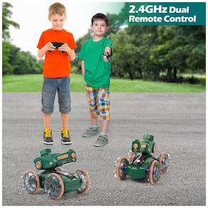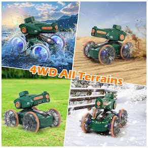 Durabilidade e Baterias de Longa Duração: Feito com plástico ABS de alta qualidade e design reforçado à prova d'água, este tanque anfíbio inclui 2 baterias recarregáveis que garantem até 120 minutos de diversão contínua em terra.
