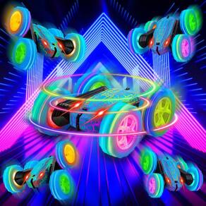 Carro acrobático LED multifuncional: além das rodas adornadas com luzes LED de cores vibrantes, este notável carro RC apresenta um intrigante design de carroceria rachada com luzes LED de cores resplandecentes. Combinado com faróis reluzentes, aumentando ainda mais o fascínio, esse amálgama de esplendor visual cria uma experiência sensorial incomparável em corridas emocionantes e deixa um profundo impacto visual.