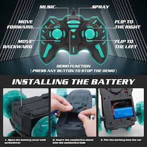 -?ACROBACIA GIRATÓRIA DE 360°?Prepare-se para um passeio emocionante com o carro acrobático de controle remoto com rodas 3D, acrobacias giratórias, giro de 360° e movimento para frente/para trás. O motor de alta velocidade e a potente tração traseira oferecem a melhor experiência de corrida.