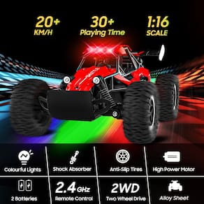 SZJJX Carro de controle remoto – Aventuras emocionantes para crianças de todas as idades! Deixe seu filho experimentar a velocidade e a emoção com os carros SZJJX RC! Este carro RC estável e de alta velocidade é perfeito para crianças de 3 a 8 anos ou mais. Com faróis de LED potentes, um controle remoto anti-interferência de 2,4 GHz e recursos para todo o terreno, é projetado para infinitas horas de diversão em ambientes internos e externos. Principais características: Luzes LED: os 3 faróis dinâmicos (azul, vermelho, verde e desligado) adicionam um elemento divertido e colorido a cada corrida. Design estável: Feito com um corpo de liga robusta e rodas que absorvem choques, este caminhão RC pode lidar com terrenos acidentados, garantindo que seu filho tenha uma experiência de condução suave e emocionante. Controle remoto avançado de 2,4 GHz: com um sistema anti-interferência e um alcance de 40 metros, seu filho pode correr com este carro RC com vários carros sem interferência. Baterias recarregáveis: duas baterias recarregáveis (20-30 minutos de reprodução por bateria) significam maior tempo de diversão com menos espera. Diversão de alta velocidade: com velocidades de até 20 km/h, este caminhão monstro 2WD oferece uma experiência de corrida verdadeiramente emocionante. Ideal para todos os tipos de brincadeiras, seja dentro ou fora, este carro de controle remoto é o presente perfeito para meninos e meninas que amam aventura. Veja como seu filho corre pela grama, sujeira e cascalho, tudo isso enquanto melhora suas habilidades motoras e coordenação. Perfeito para o Natal, aniversários e outras ocasiões especiais, o caminhão monstro SZJJX RC será um sucesso com qualquer criança que ame um passeio divertido e rápido. - ? Faróis de LED dinâmicos – Este carro de controle remoto possui 3 faróis de LED coloridos com 4 modos (azul, vermelho, verde e desligado) para adicionar emoção extra durante o jogo. Veja as luzes brilharem enquanto as crianças correm em suas aventuras! - Corpo de liga estável e desempenho em todos os terrenos – Construído com um corpo de liga forte, este carro RC é projetado para maior durabilidade. As rodas de absorção de choque garantem passeios suaves em todas as superfícies, incluindo sujeira, grama e cascalho, para que a diversão nunca pare em ambientes internos ou externos. - ? Controle remoto avançado de 2,4 GHz – Com um sistema anti-interferência de 2,4 GHz, este carro RC permite que as crianças corram com vários carros simultaneamente sem interferência. O alcance de 40 metros garante corridas emocionantes em áreas de jogo maiores. - Maior tempo de diversão com baterias recarregáveis – Desfrute de 20 a 30 minutos de jogo com duas baterias recarregáveis incluídas. O cabo de carregamento fácil de usar garante uma configuração rápida, para que seu filho possa pular direto para a ação! - 🎁 Presente perfeito para crianças a partir de 3 anos – Este caminhão monstro de controle remoto é um presente ideal para meninos e meninas de 3, 4, 5, 6, 7 8 ou mais, perfeito para aniversários, Natal, Dia das Crianças ou qualquer ocasião especial. Dê o presente de velocidade, diversão e emoção!