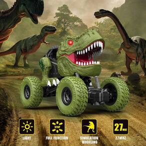 Carro de controle remoto, caminhão de controle remoto, dinossauro, caminhões, brinquedos para crianças de 3, 4 a 7, 8 a 12 anos, brinquedo de dinossauro para crianças, presente de aniversário para meninos e meninas, diversão para a família, brinquedos de dinossauro para crianças, carro RC, caminhão RC todo-terreno, caminhões monstruosos de dinossauro RC com luz LED, diversão para a família, ambientes internos e externos, brinquedo de carro RC para 3, 4, 5, 6, 7, 8-12 Anos Meninos Crianças Natal Presentes de aniversário - Carro dinossauro de controle remoto super legal: este caminhão monstro de dinossauro RC distinto, controles remotos que movem os carros para frente e para trás para a esquerda, o caminhão de dinossauro de controle remoto tem funções de dinossauro e brinquedo de corrida, o caminhão de dinossauro tem a aparência de um tiranossauro violento. o efeito de faróis LED piscando vivifica este caminhão RC enquanto brinca em ambientes internos e externos. - Controle de alto desempenho de 2,4 GHz: equipado com baterias recarregáveis de 3,7 V 1200 mAh para caminhão de controle remoto, carro dinossauro de controle remoto, caminhão monstro de controle remoto de 2,4 GHz, carro monstro RC Dino, carro de controle remoto para meninos de 4 a 7 8 a 12 anos e crianças. Você pode controlar este carro de dublê de controle remoto elétrico em qualquer direção com seu controle remoto para criar diversão infinita para as crianças. Brinquedo de carro de controle remoto para meninos de 4 anos, brinquedos de dinossauro para crianças de 3 a 5 anos. - Caminhões de carro de dinossauro RC para todos os terrenos: controles fáceis; longa distância e anti-interferência, o carro de controle remoto tem aparência e design de caminhão monstro de dinossauros, e o efeito de luz LED é muito atraente para crianças. Este carro RC é adequado para a maioria dos terrenos, como gramados, cascalho, sujeira, rocha, na praia, permitindo que as crianças brinquem com ele na maioria dos ambientes. Cria mais alegria ao ar livre para vários jogadores. - Materiais de alta qualidade: feito de ABS de qualidade premium e materiais de PVC não tóxicos, a carroceria do carro super à prova de choque evita danos, torna a carroceria mais durável e à prova d'água. Com a borracha de alta qualidade, não é fácil quebrar ou cair, protege efetivamente o desgaste e contra vibrações. O caminhão de dinossauro é forte, seguro e durável, coloque as baterias em veículos e controles e veja seus filhos se divertirem horas de corrida! brinquedos de dinossauro para crianças de 5 a 7 anos. - Melhor presente perfeito para crianças: com uma velocidade de condução de alta velocidade de 20 km/h, a bateria dura entre 30-40 minutos, com sistema de controle de rádio de 2,4 GHz. Sistema de motor potente e controle remoto fácil de operar, este carro de controle remoto Dino é adequado para presentes de aniversário de crianças, presentes de dia das crianças, presentes de Páscoa, presentes de Halloween para meninos de 5, 6, 7, 8, 9, 10, 11, 12 anos.