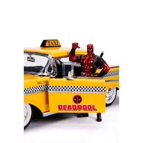 O carro em escala 1:24 tem tamanho ideal para colecionadores exibirem em prateleiras ou mesas. Possui rodas funcionais com pneus de borracha, aumentando a jogabilidade e realismo. Acompanha uma miniatura colecionável do Deadpool de 7 cm, também feita em metal fundido, capturando o icônico personagem da Marvel em seu traje vermelho e preto.