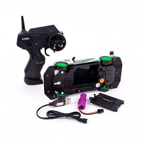 Itens inclusos: carrinho, controle remoto, 4 pneus de drift,