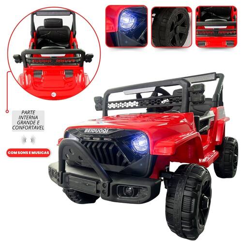 Destaques do Produto - Design Impactante: Inspirado no verdadeiro Jeep Rubicon, seu visual robusto e off-road torna a diversão ainda mais empolgante para as crianças. - Conforto e Espaço Interno: Um assento espaçoso que oferece conforto e exclusividade na hora de brincar. - Sons e Músicas: Sons reais de Jeep e músicas divertidas tornam a experiência ainda mais imersiva. - Fácil de Usar: Intuitivo, com botões fáceis de operar — basta acelerar e curtir a aventura.
