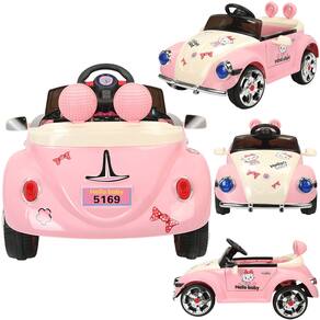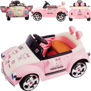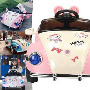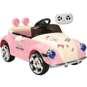 O Veículo Elétrico Volkswagen Fusca Beetle 12V com Controle Remoto da Bang Toys está disponível na versão rosa Hello Baby e azul.