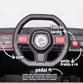 Deixe a criançada pegar a estrada com o Mini Quadriciclo Elétrico! As brincadeiras ficarão muito mais realistas, pois o mini carro possui luzes, som e função frente e ré. O mini veículo pode ser controlado pela criança por meio de acionamento de pedal e controle da direção, assim como, por um adulto utilizando o controle remoto. É ideal para crianças de 3 a 8 anos, com capacidade de até 50kg. Possui marcha para frente, ré e neutro. Simplesmente o melhor do passeio com a maior aventura. Altamente resistente e durável, peças de qualidade, selo Inmetro e Anatel, para assim, garantir conforto, e principalmente, segurança para os pequenos pilotos.