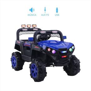 Carro Elétrico Infantil 12V Azul Ronco Motor Farol Led Usb