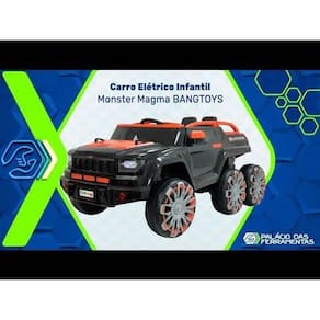 Fabricado pela renomada marca Bang Toys, o Carrinho Elétrico Monster Magma é sinônimo de qualidade e durabilidade. O modelo conta com acabamento resistente em plástico, portas funcionais que se abrem de verdade e luzes em LED que simulam um veículo real, despertando ainda mais o interesse das crianças. Além disso, possui recursos eletrônicos como entrada USB, MP3 e sons que simulam a partida, o que torna a brincadeira ainda mais realista. Tudo isso é acompanhado por uma bateria recarregável de 12V e controle remoto para que os pais possam conduzir o carrinho quando necessário, garantindo maior tranquilidade e segurança.