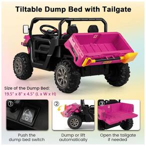 Cama de despejo automático e pá extra equipado com uma cama de despejo inclinável, este trator de brinquedo elétrico traz às crianças uma experiência única em comparação com o passeio comum em carros. Depois que as crianças empurram o interruptor da cama de despejo, ele despeja ou levanta automaticamente. Juntamente com a pá, seus pequenos podem desfrutar de horas de diversão carregando areia, coletando folhas caídas e muito mais.