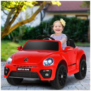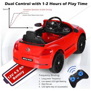 Carro de passeio licenciado Este carro é oficialmente licenciado pela Volkswagen Beetle e tem uma aparência realista com portas duplas. As portas podem abrir e travar enquanto os faróis podem permanecer acesos ou piscar junto com a luz do painel, tornando o carro real e atraente.