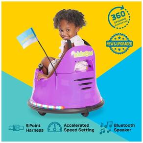 O pára choque elétrico é feito de plástico durável e não tóxico, com cintos de segurança ajustáveis de 5 pontos, pneus anti flat e uma borracha acolchoada na parte inferior para reduzir solavancos. O recurso de segurança de partida lenta garante que cada viagem seja suave e facilmente controlada. O carrinho está em conformidade com os regulamentos de segurança ASTMCPSIACPSCCA Prop 65FCC e vem com uma bandeira de corrida para maior visibilidade.