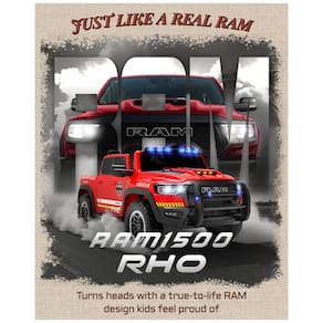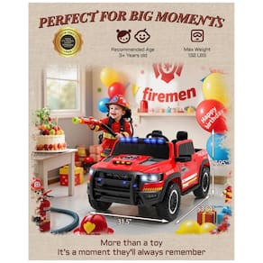 O Carro Elétrico Infantil Caminhão de Bombeiros RAM 1500 24V é uma miniatura oficial do icônico RAM 1500 com visual inspirado em caminhão de bombeiros, com pintura vermelha vibrante, luzes piscantes, sirene e megafone funcional. As crianças podem curtir suas músicas preferidas com conectividade Bluetooth, AUX e USB.