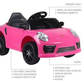 Carro Elétrico Infantil Conversível Carrinho De Passeio Motorizado Esportivo 12V Rosa Controle Usb Mini esportiva 12v - rosa