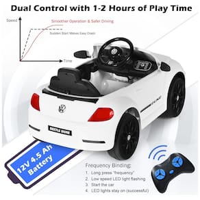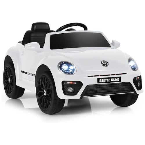 Carro de passeio licenciado Este carro é oficialmente licenciado pela Volkswagen Beetle e tem uma aparência realista com portas duplas. As portas podem abrir e travar enquanto os faróis podem permanecer acesos ou piscar junto com a luz do painel, tornando o carro real e atraente. Condução por controle remoto ou manual As crianças podem controlar totalmente o carro com o volante, o pedal de aceleração e o interruptor de direção sozinhas. O modo manual tem 2 velocidades e a velocidade máxima atingirá até 3 km, h. E para fins de segurança, os pais são capazes de controlá lo com controle remoto que tem 3 velocidades. Mídia multifuncional para aproveitar equipado com música e tomada USB, este carro permite que as crianças aproveitem tanto as músicas quanto a direção. Seus filhos podem mudar de música e ajustar o volume para um som suave. É um presente ideal para crianças de 37 a 96 meses. Passeio e confortável seus filhos andarão suavemente devido à suspensão das quatro rodas e um sistema de início lento. Com um assento aconchegante com um cinto de segurança, o cruzeiro também é e confortável. As crianças podem desfrutar de uma aventura no bairro na maior parte do solo uniforme. Alto desempenho com bateria duradoura Nosso carro tem uma bateria duradoura de 12 V 4,5 Ah que permite que o carro funcione constantemente 1 a 2 horas até 8 a 12 horas de carga. E permite 1 ciclista abaixo de 30 kg. A dimensão geral é x x C x L x A Marca: Não Informado