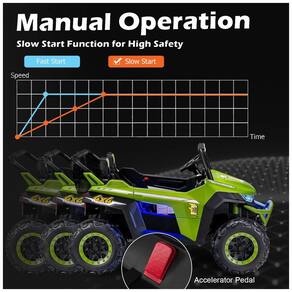 O UTV também inclui uma série de recursos de entretenimento, como música embutida, som real do motor e botões de buzina. Para tornar a condução ainda mais divertida, ele possui conectividade com USB, slot para MP3, FM e Bluetooth, permitindo que você toque as músicas favoritas das crianças durante a brincadeira.