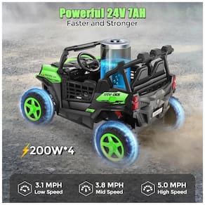 O Carro Elétrico InfantilOff Road oferece 2 modos de condução e 3 velocidades diferentes. As crianças mais novas podem se divertir enquanto os pais controlam o carrinho com o controle remoto. Já as crianças maiores, a partir de 3 anos, podem assumir o volante, usando o pedal para alternar entre as velocidades alta e baixa. As opções de velocidade variam de 3 km/h a 7,6 km/h, com 2 velocidades no modo manual e 3 velocidades no controle remoto.