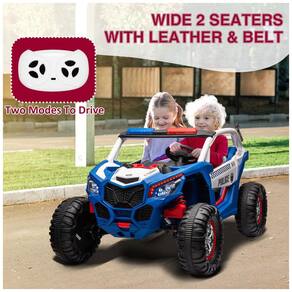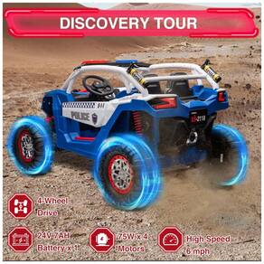 Com dimensões de 133 cm de comprimento, 91 cm de largura e 80 cm de altura, e um diâmetro de roda de 38 cm, o carro suporta uma carga máxima de até 60 kg. Além disso, conta com funções adicionais como reprodutor de música, luzes brilhantes e rádio, tornando a experiência de passeio ainda mais divertida.